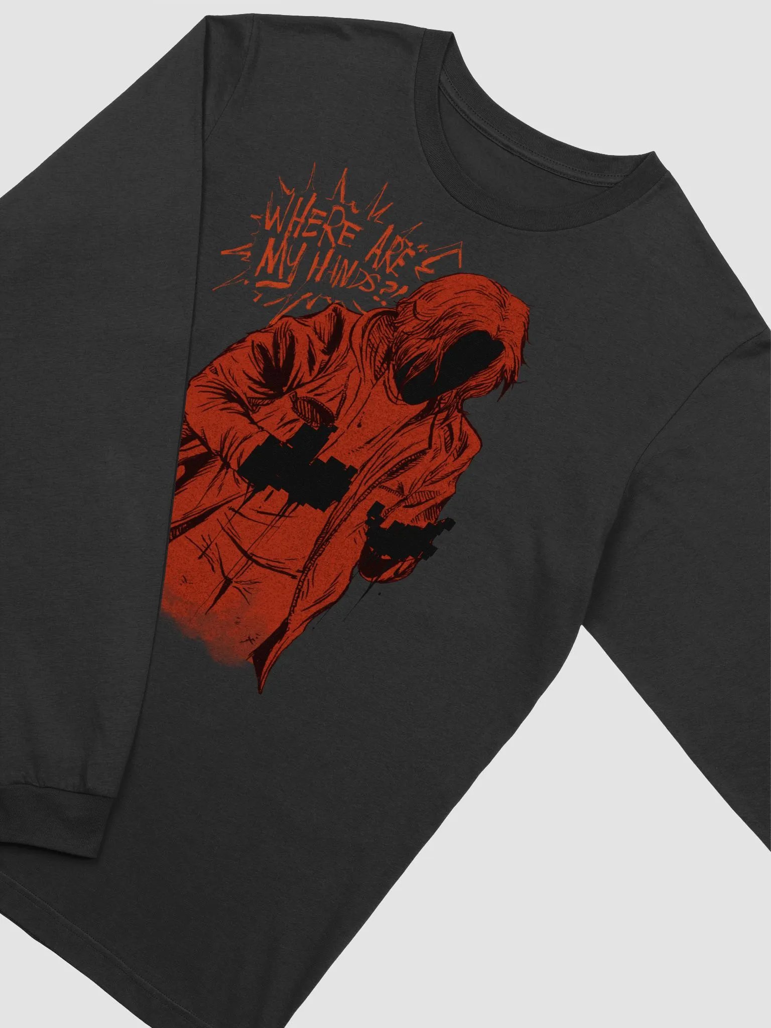 His hands may be lost, but he's still determined to find the truth! Take this disturbing piece of Nathan's journey with you wherever you go with this EXCLUSIVE new shirt, featuring all new art by Lyra Pihl!